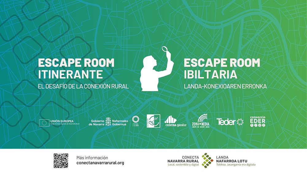 Uno de los mayores desafíos de la Navarra rural es el reto demográfico, uno de los aspectos en los que trabajan las entidades de desarrollo local de la Comunidad Foral: Asociación Cederna-Garalur, Asociación TEDER, Consorcio de Desarrollo de la Zona Media y Consorcio EDER. Estas entidades ponen en marcha diversas iniciativas para lograr que los pueblos navarros sean lugares vivos y atractivos para la ciudadanía. Como parte de las soluciones, han trabajado de manera conjunta en el proyecto Conecta Navarra Rural, una apuesta por divulgar, fomentar y sensibilizar la digitalización, la movilidad sostenible y el producto local. Estos tres pilares estarán presentes en los 126 escape rooms gratuitos que se realizarán en cada uno de los territorios de enero a abril de 2024. La acción se lleva a cabo gracias a la financiación del Gobierno de Navarra y los fondos europeos FEADER a través del Programa de Desarrollo Rural 2014-2020.