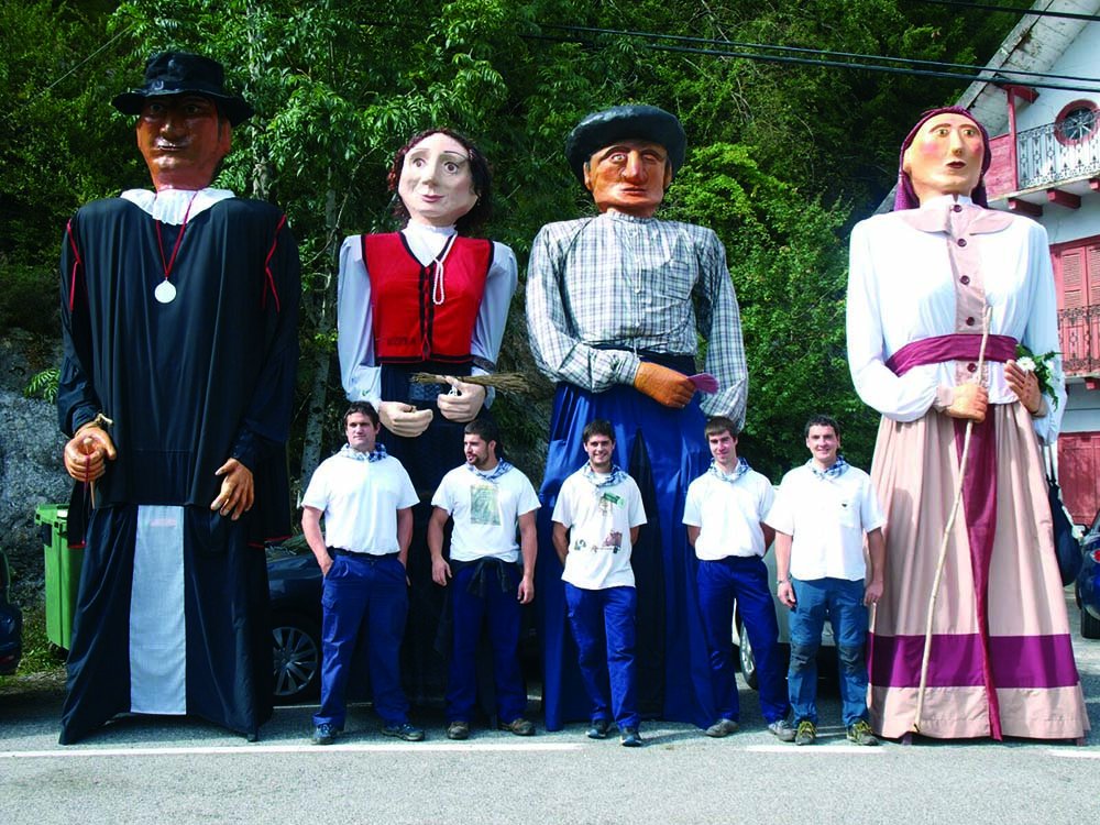12:00 Kalejira. Gigantes de Aezkoa, Pipirripi Dantza Taldea, alcaldes y alcaldesas con traje tradicional aezkoano