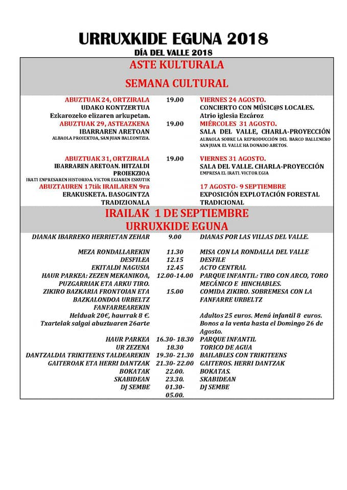El sábado 1 de septiembre tendrá lugar en la localidad de Ezkaroze una nueva edición del Día del Valle de Salazar-Urruxkide Eguna.