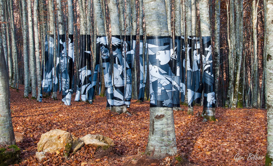 La Coordinadora Monte Alduide, a la vista del interés que ha suscitado el trabajo del “Gernika” pintado sobre las hayas en Zilbeti (Navarra), ha organizado visitas guiadas para llegar hasta el lugar. Los carteles indicadores desaparecen, y más de un visitante se ha vuelto sin poder ver el trabajo.