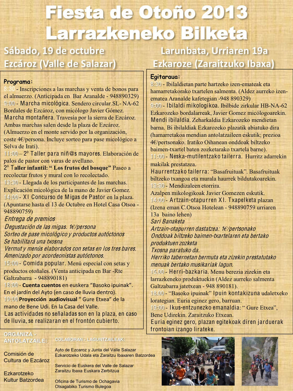 El próximo sábado 19 de octubre se celebrará en Ezkaroze una nueva edición de la Fiesta de Otoño/Udazkeneko Bilketa.