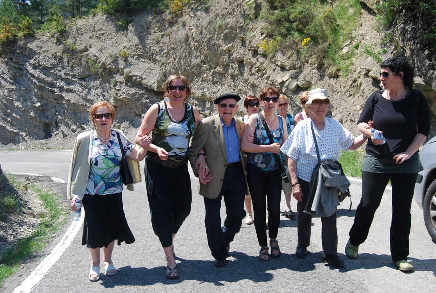 Participaron en el homenaje uno de los esclavos del franquismo que trabajó en esta carretera, Luis Ortiz Alfau, luchador y prisionero republicano, cautivo también en el campo de concentración de Gurs (Francia) y que prosigue en el trabajo social a través de su participación en el Banco de Alimentos de Bizkaia. Además, estuvieron presentes y participaron familiares de varios de los luchadores antifranquistas que trabajaron en esta carretera, entre ellas Margarita López, viuda de Mariano Crespo, así como de otras víctimas del franquismo en Navarra, como Josefina Lamberto, hija de Vicente y hermana de Maravillas, fusilados en 1936 por los fascistas, y firme trabajadora por la memoria de las víctimas del franquismo. Acompañaron también con sus intervenciones integrantes de diversos colectivos como Amicale du Camp de Gurs (Francia), asociación que trabaja en torno a este campo de concentración francés, en el que estuvieron encerrados miles de personas exiliadas, entre ellas varias del valle de Roncal; Berriz 1938 Gogoratzen (Bizkaia), en el que participan familiares de prisioneros que trabajaron en esta carretera; Kattin Txiki, que recientemente ha organizado un acto de homenaje a los esclavos del franquismo en Oiartzun (Gipuzkoa), precisamente en un carretera que unía este pueblo guipuzcoano con Lesaka, en Navarra; Pueblo de las Viudas, de Sartaguda y Sanfermines 1978 Gogoan, asociaciones integradas en el Autobús de la Memoria, de Navarra y que presentaron la querella contra el franquismo iniciada en los juzgados de Argentina, así como el reciente libro “No os olvidaremos, Navarra 1936. Memoria de la Represión Golpista”. Este libro, editado por Pamiela, Orreaga y el Autobús de la Memoria recoge textos, entre otros, de Carlos Martínez e Iñaki Arzoz, así como el catálogo de la exposición de pinturas realizada por el artista José Ramón Urtasun.