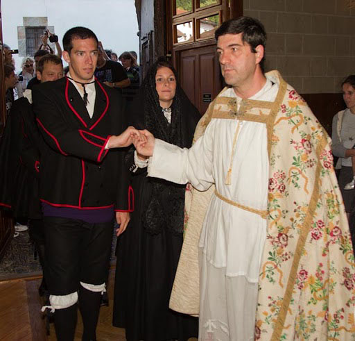 No faltó la víspera la celebración multitudinaria de la ronda de los novios, ni faltó de par de mañana el bando que anunciaba la ceremonia. Y en la ceremonia tampoco faltó un clero correctamente ataviado con prendas litúrgicas de la época, ni un sacristán portando la Cruz parroquial, ni unos monaguillos, ni unos padrinos y unos novios de riguroso negro, y un centenar largo de trajes roncaleses, y cientos de personas ataviadas de blanco y negro.