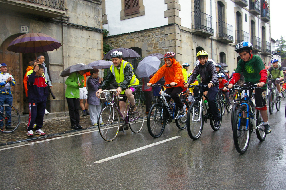 Pero no sólo los cicloturistas. Los txikis también tomaron la salida y pese a la lluvia completaron sus 2 kms de Irati Xtrem previos a una reconfortante chocolatada, a los inchables y juegos en los que disfrutaron toda la mañana.