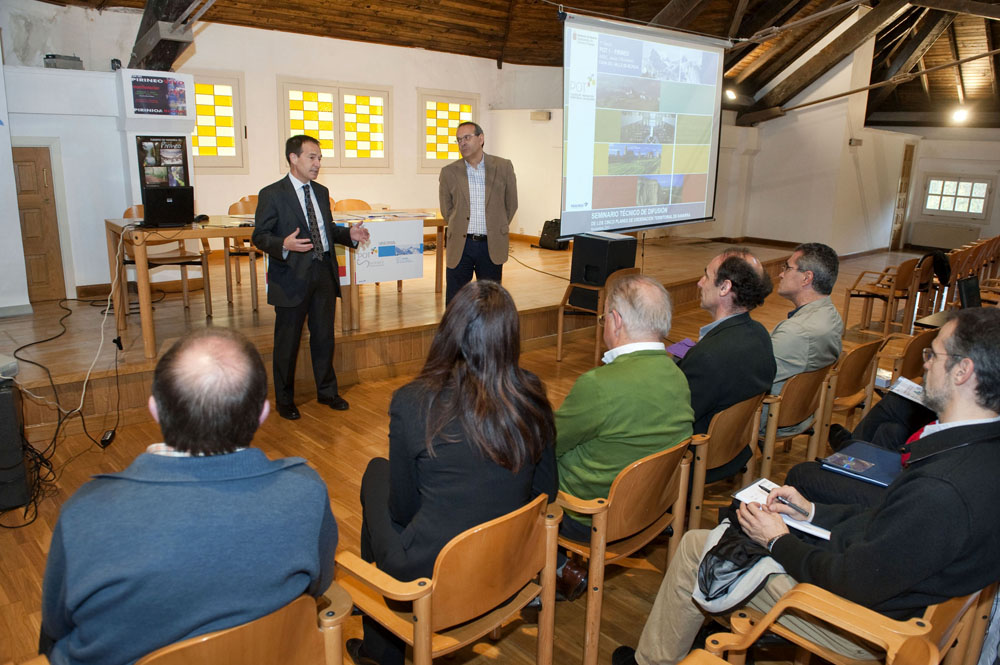 Se trata de la primera de las cinco jornadas que componen el ‘Seminario Técnico de Difusión de los Planes de Ordenación del Territorio (POT), organizado por el Gobierno de Navarra para acercar el contenido de los cinco POT en que se divide la Estrategia Territorial Navarra a los agentes territoriales encargados de la ordenación territorial. Las otras cuatro sesiones tendrán lugar durante el mes de noviembre en Lekunberri (Navarra Atlántica), Pamplona (Área Central), Olite (Zonas Medias) y Tudela (Eje del Ebro). En el acto ha participado, además, la directora general de Ordenación del Territorio y Vivienda, Marie Gómez, y Jóse Antonio Marcén, director del servicio de Ordenación del Territorio y Vivienda y miembro del equipo redactor de los POT. Tras la intervención del consejero Astiz y la exposición de los contenidos particulares del POT del Pirineo, se ha abierto un foro de debate en el que los asistentes han podido plantear dudas y aportar sugerencias.
