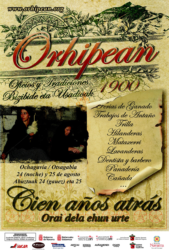 Un año más, este fin de semana (Viernes 24 noche y sábado 25) la localidad de Ochagavía (valle de Salazar) celebrará la fiesta de Orhipean: oficios y tradiciones. Como en anteriores ediciones se tratará de retroceder en el tiempo y rememorar un día cualquiera de hace 100 años.