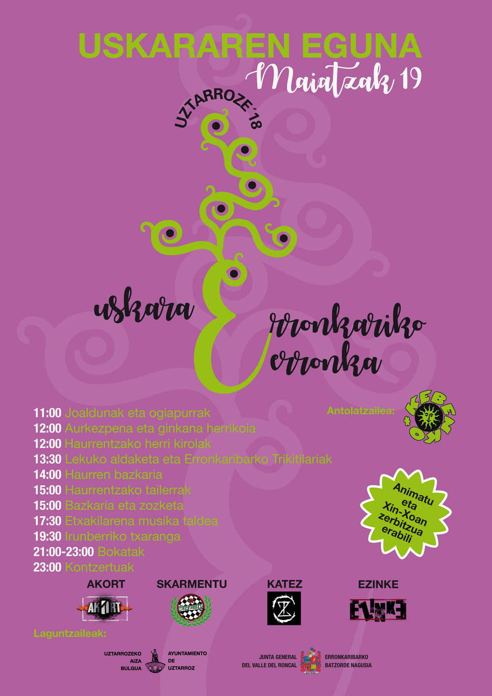 Por ello deseamos que además de disfrutar y compartir este día de fiesta en Uztárroz, comencemos a afrontar el reto que se nos presenta y hagamos entre todos y todas que el euskara sea la planta más preciada de Erronkari, reflejando el esfuerzo de sus siete pueblos.”