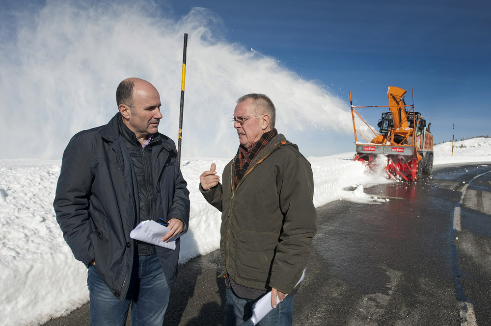 El vicepresidente de Desarrollo Económico, Manu Ayerdi ha visitado este lunes el dispositivo de mantenimiento invernal en el Puerto de Belagua, así como la reforma variante de Burgui, cuyas obras han finalizado recientemente.